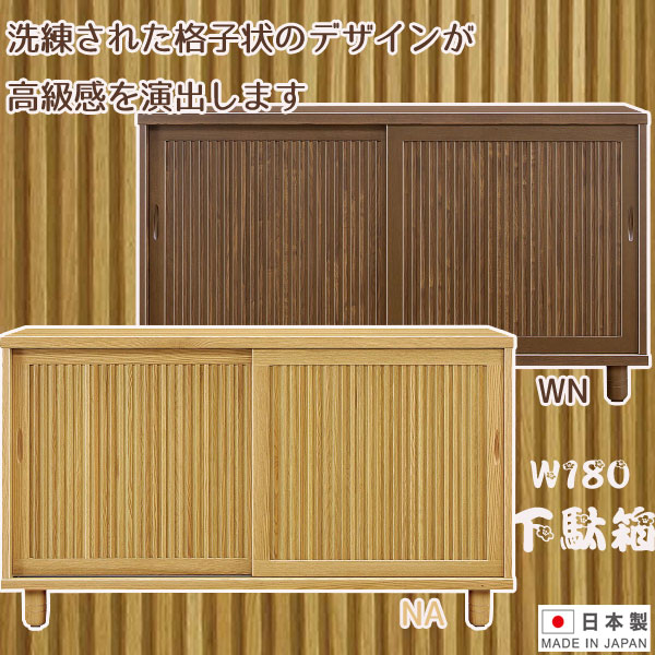 シューズボックス 下駄箱 玄関収納 靴箱 180幅 幅180cm ロータイプ シューズケース 靴収納 引き戸 和風 高級 シンプル 脚付き 日本製 和モダン 棚板可動 アウトレット価格並 大川家具 楽天 通販 【送料無料】