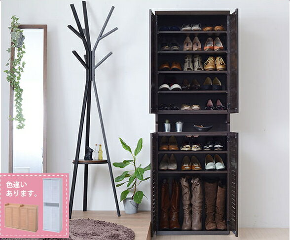 ルーバーシューズボックス 幅60cm 2個組 縦置き 可動棚 ルーバー扉 棚付 積み重ね設置可能