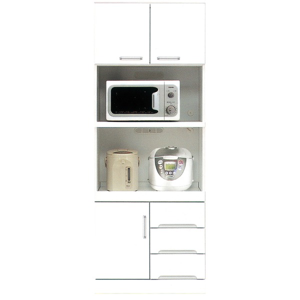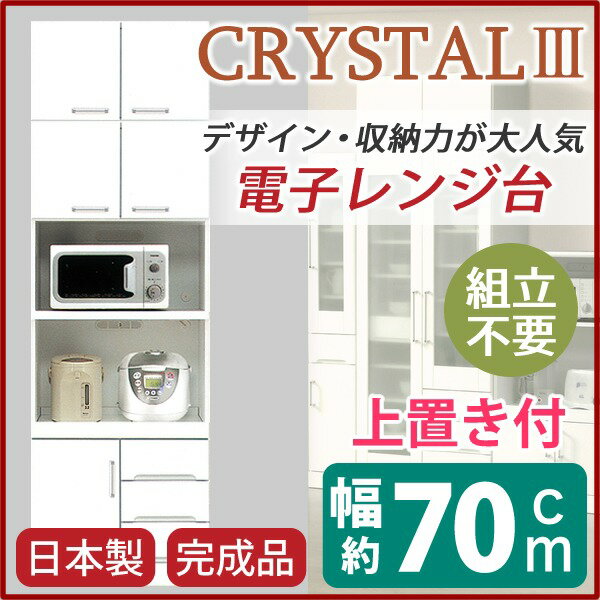 ハイタイプレンジボード 【上置き付き】 幅70cm 耐震ラッチ/二口コンセント付き 日本製 ホワイト(白) 【完成品】【玄関渡し】【代引不可】 送料込!
