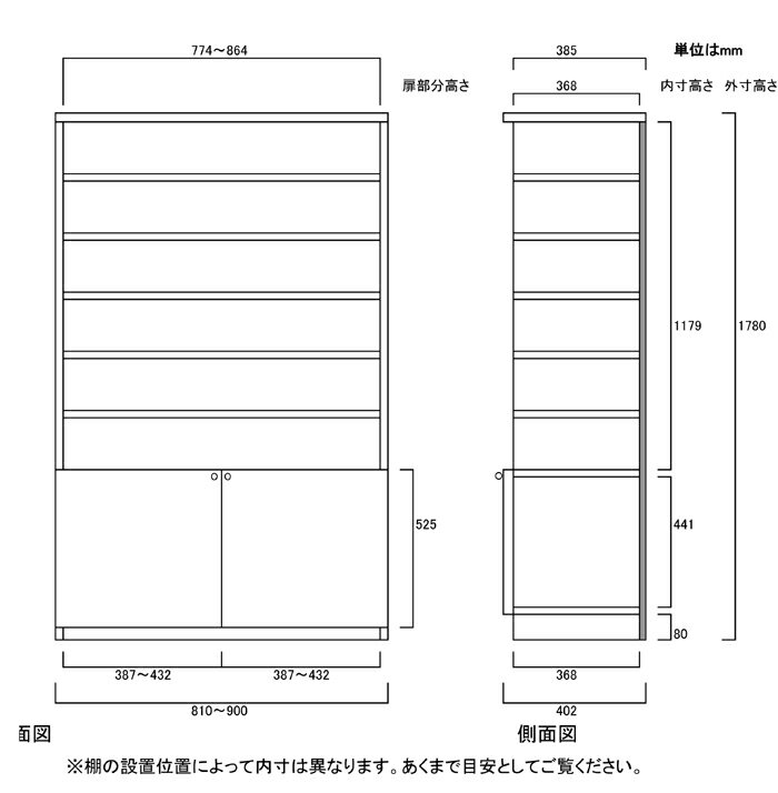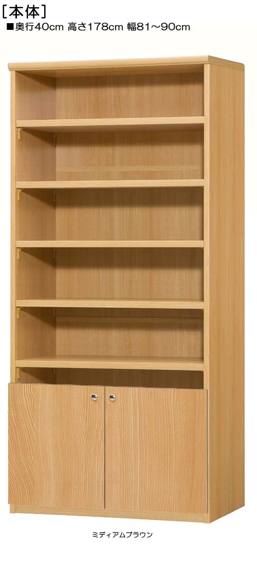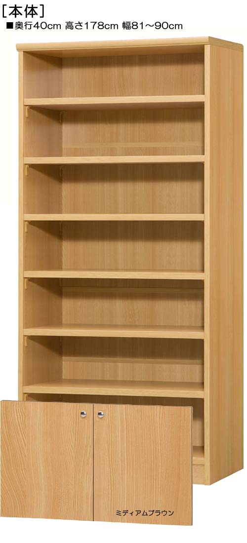 扉付大収納ラック高さ178cm幅81〜90cm奥行40cm厚棚板(棚板厚み2.5cm)両開き 扉高さ52.5cm 扉付玄関本棚 大収納ラック
